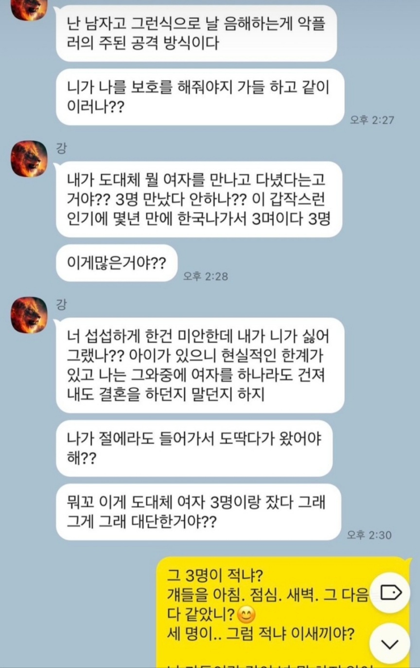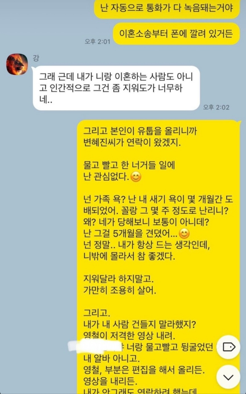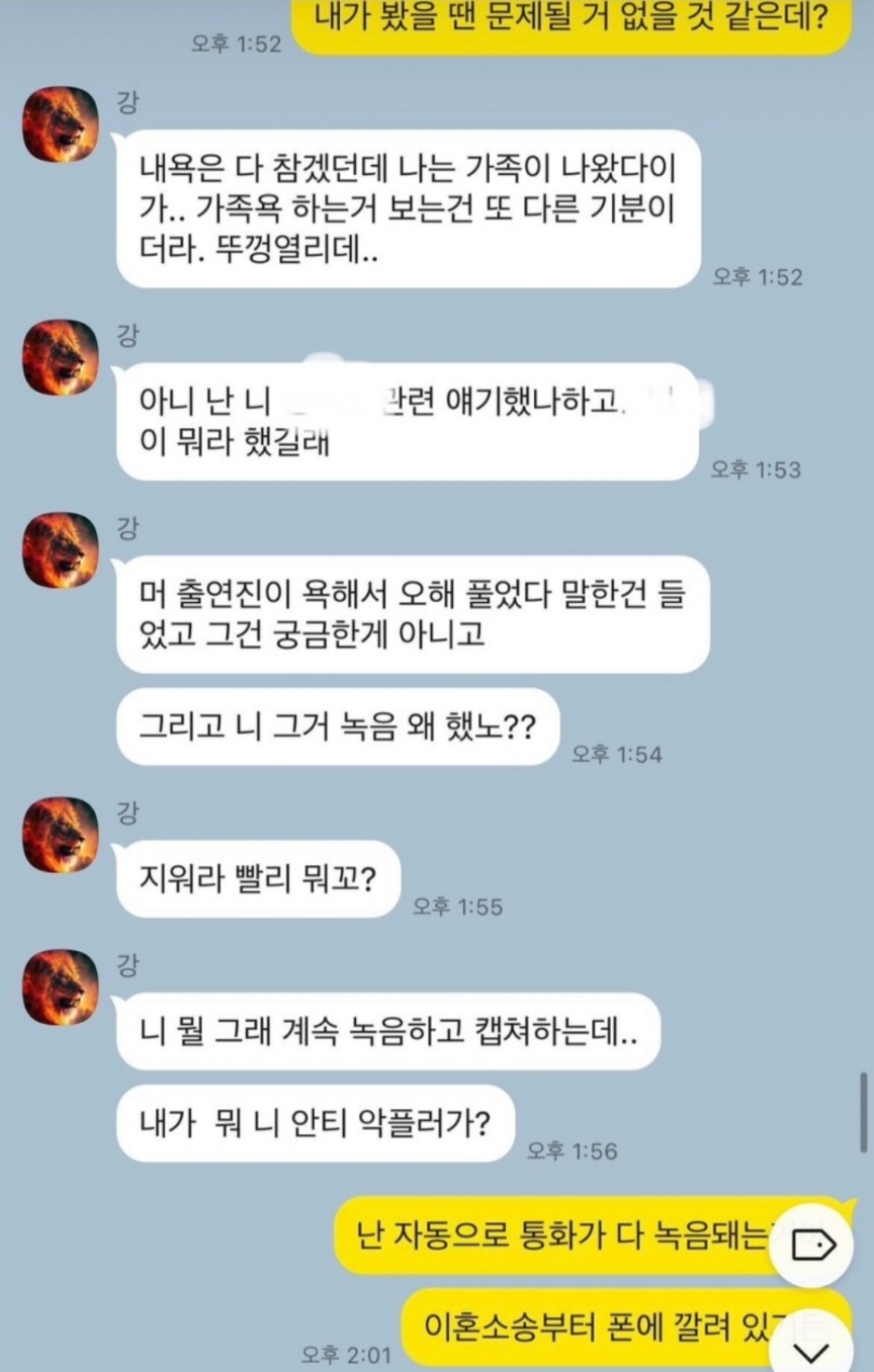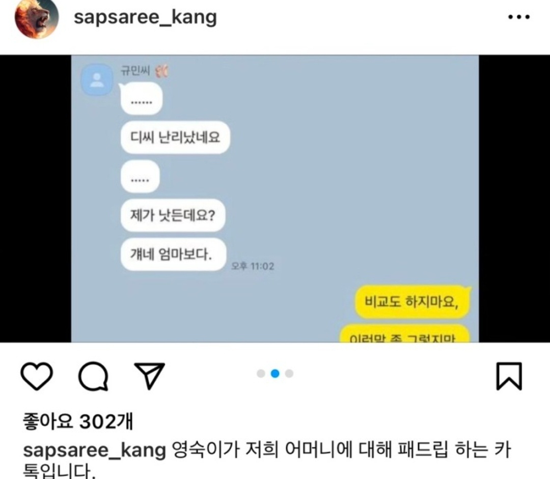 상철은 상철 어머니가 북한 여자라는 카톡과 전처가 지들 나라로 갈만하지 않냐는 카톡 내용을 증거로 올렸습니다. 심지어 미친것들이라는 말로 패드립을 했다는 것을 인스타에 올렸습니다. 이런 제보를 받았다면 화가 많이 났을 것 같네요.