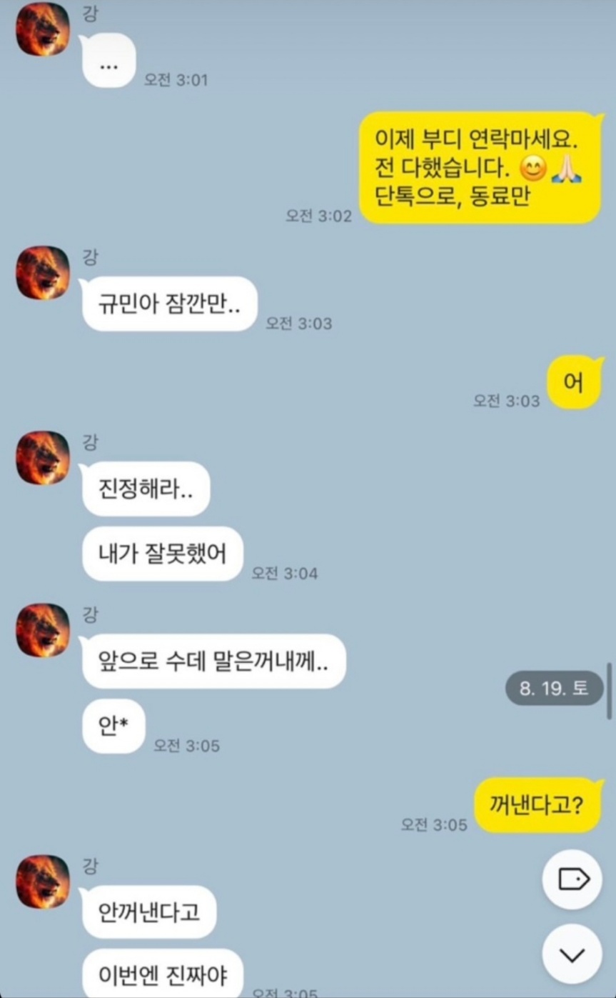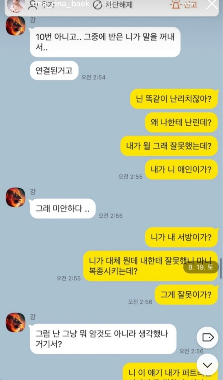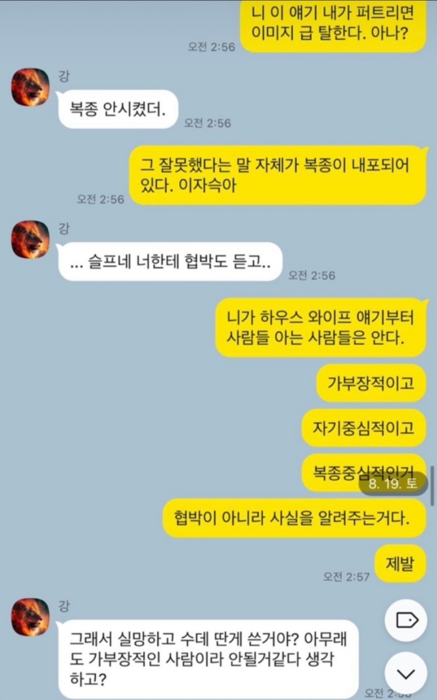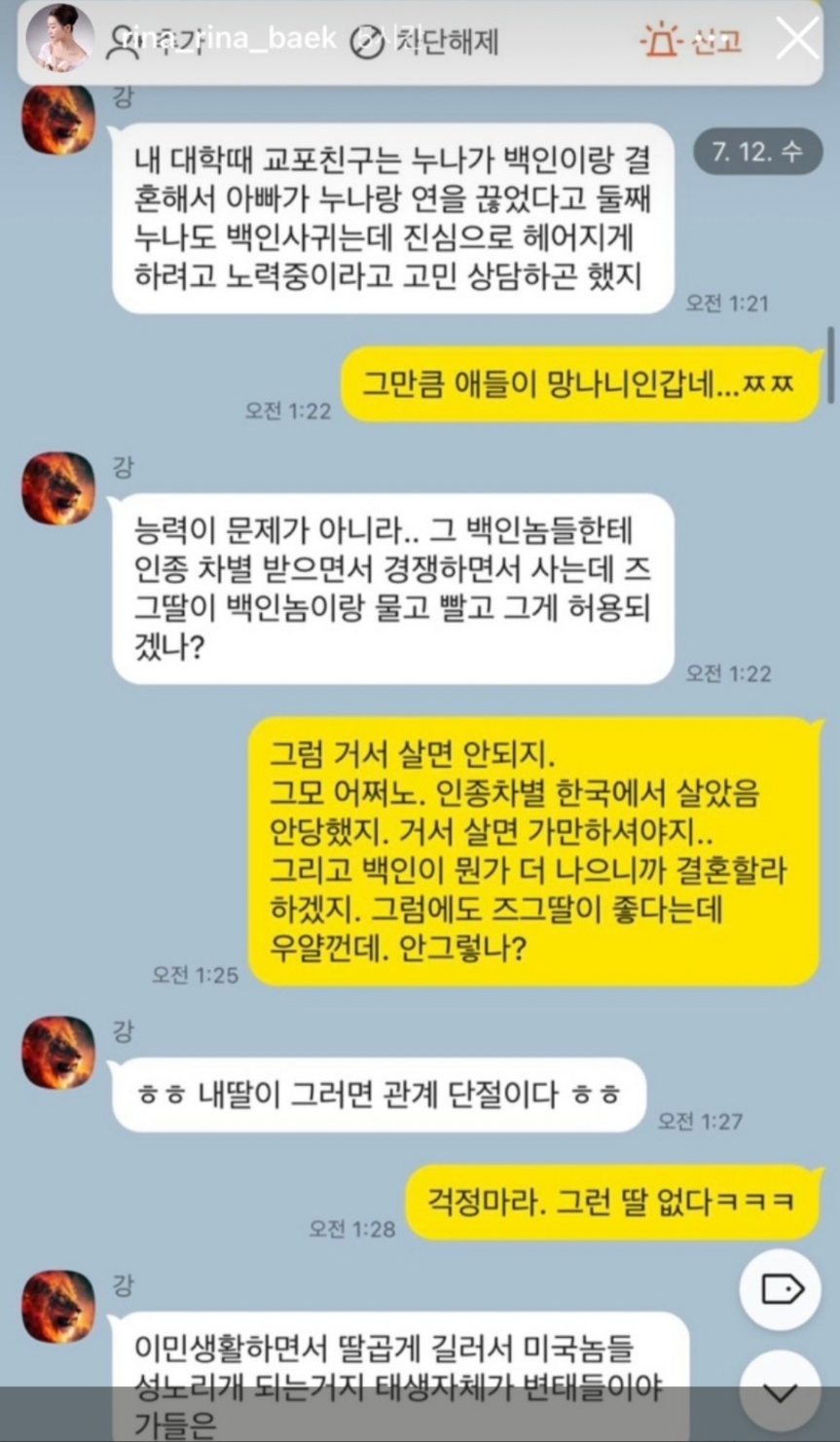 상철은 상철 어머니가 북한 여자라는 카톡과 전처가 지들 나라로 갈만하지 않냐는 카톡 내용을 증거로 올렸습니다. 심지어 미친것들이라는 말로 패드립을 했다는 것을 인스타에 올렸습니다. 이런 제보를 받았다면 화가 많이 났을 것 같네요.