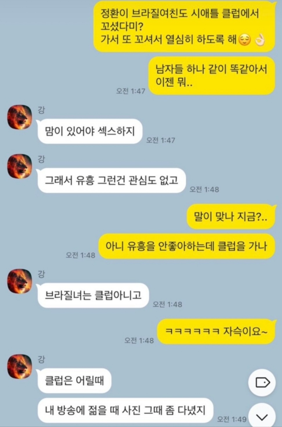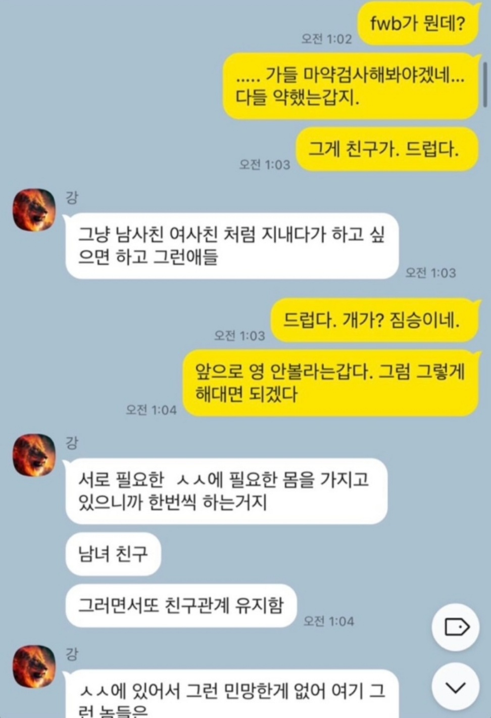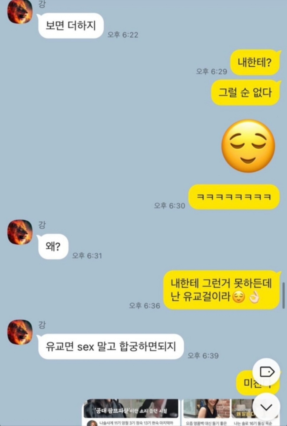 19금 내용이 난무하는 카톡 내용을 공개한 영숙입니다. 1일 1식으로 살이 찌지 않는다는 영숙에게 이혼 후 밤일을 하지 않아 살이 찐다는 말을 하는 상철입니다. 미국은 fwb 문화가 심하다 말, 남사친 여사친 간의 관계를 말 등 카톡이 공개되어 이미지에 타격을 입게 될 것 같습니다.