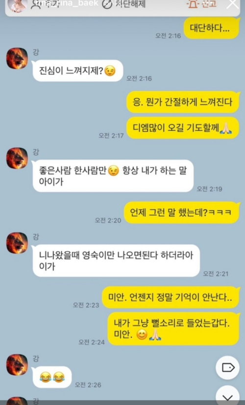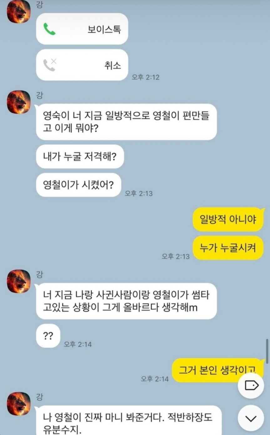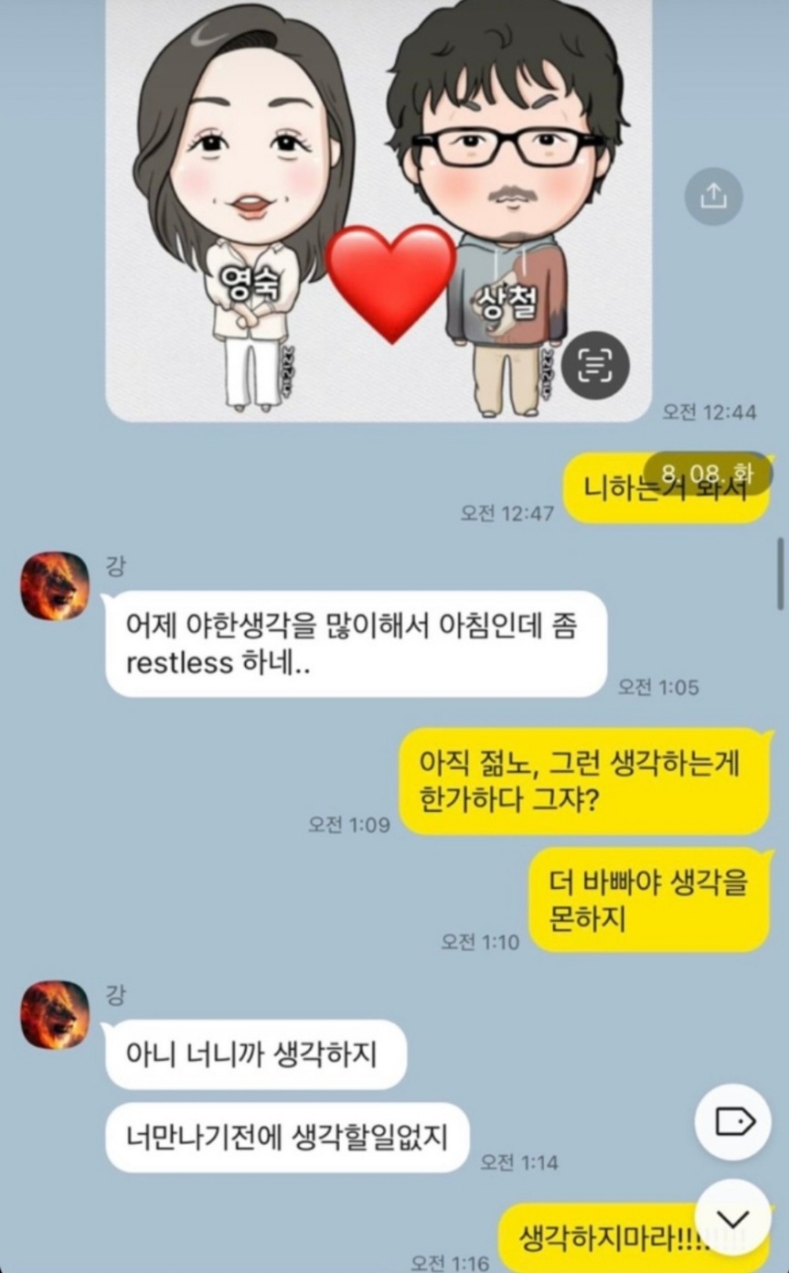 1. 상철과 영숙의 카톡내용