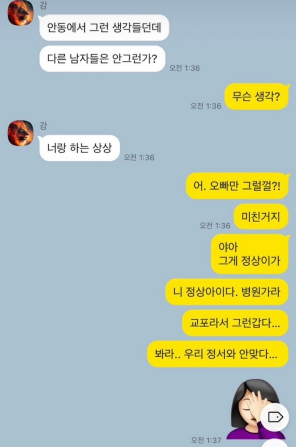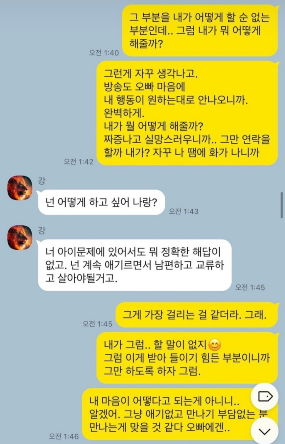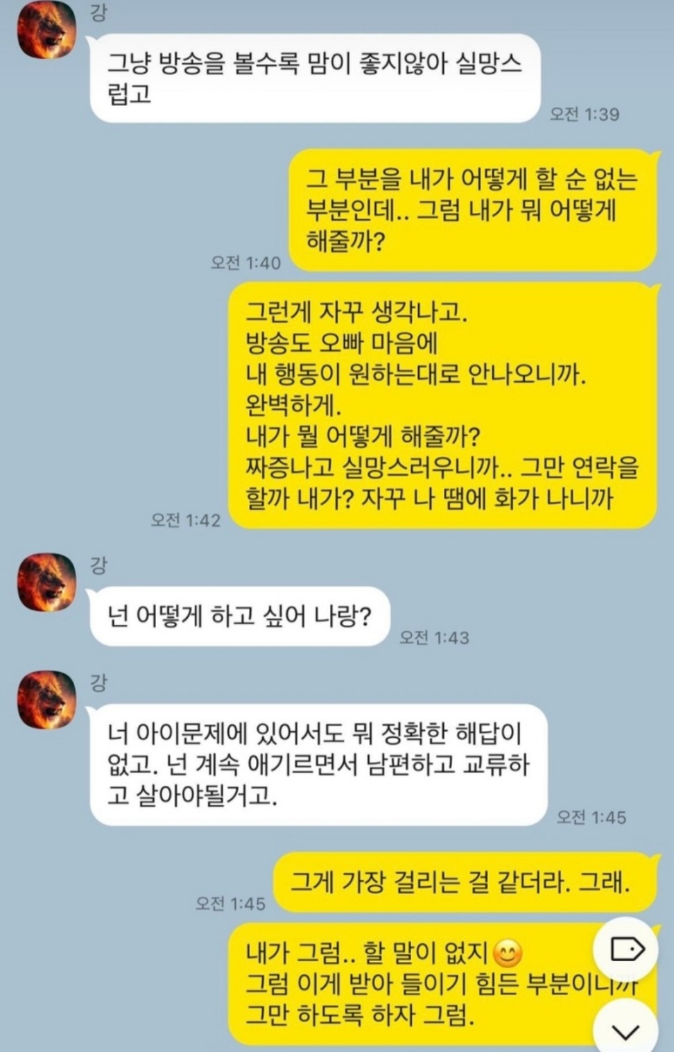 1. 상철과 영숙의 카톡내용