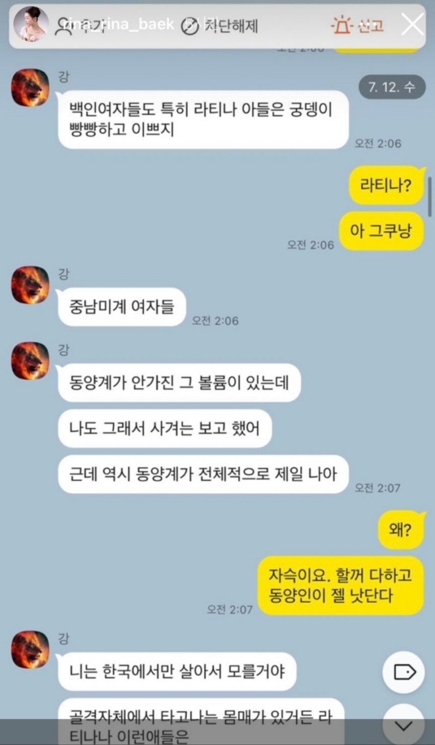 상철은 상철 어머니가 북한 여자라는 카톡과 전처가 지들 나라로 갈만하지 않냐는 카톡 내용을 증거로 올렸습니다. 심지어 미친것들이라는 말로 패드립을 했다는 것을 인스타에 올렸습니다. 이런 제보를 받았다면 화가 많이 났을 것 같네요.