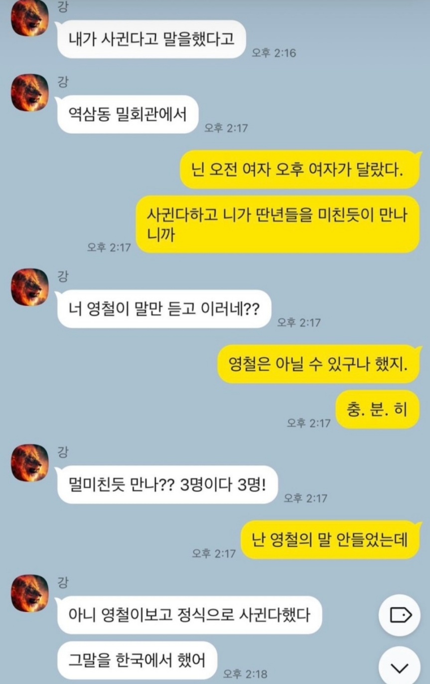 가족을 욕했다는 생각에 영숙에게 아마 한바탕 욕설을 퍼부은 것으로 추정됩니다. 더군다나 변혜진의 상철 양다리 폭로로 상철의 이미지도 많이 추락한 상태였는데요. 본인과 사귀는 사람이 영철과 썸을 탄다는 말은 아마 변혜진을 말하는 것 같습니다. 한국에서 3명의 여자를 만났다고 고백하는 상철에게 여러 명을 동시에 만난 상철을 비난하는 영숙입니다. 상철은 본인을 음해하려는 악플러들의 공격이라고 하지만 영숙은 비난을 이어갑니다. 여기까지 무로 55장의 카톡 내용을 스토리에 올린 영숙입니다.
