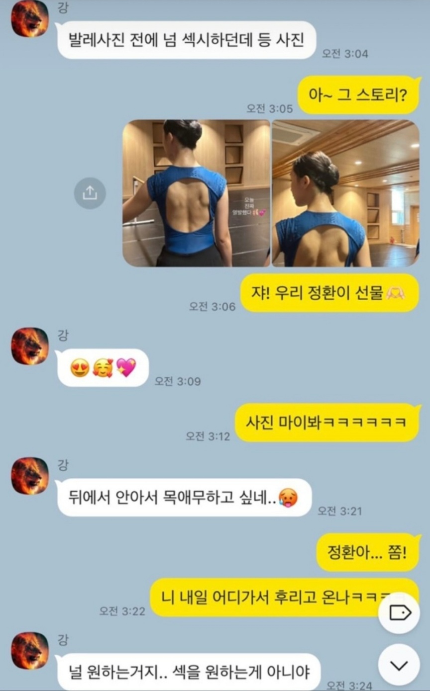 마음이 가야 잠자리가 가능한지 물어보며 안동에서 영숙과의 상상을 해봤다는 말에 경악을 금치 못했습니다. 이런 말에 선을 그으면서도등이 파인 발레복을 입은 사진을 선물이라고 보내주는 영숙의 모습도 이해가 가지는 않습니다. 뭔가 상철에게 정신 차리라고 이야기하면서도 즐기는 모습 같아 보이네요.