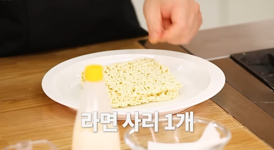 1. 전자레인지용 접시 위해 라면을 올려주세요.