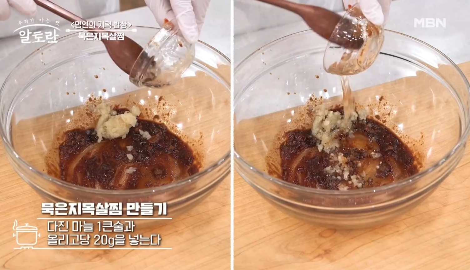 5. 다진 마늘 1큰술과 올리고당 20g을 넣습니다.