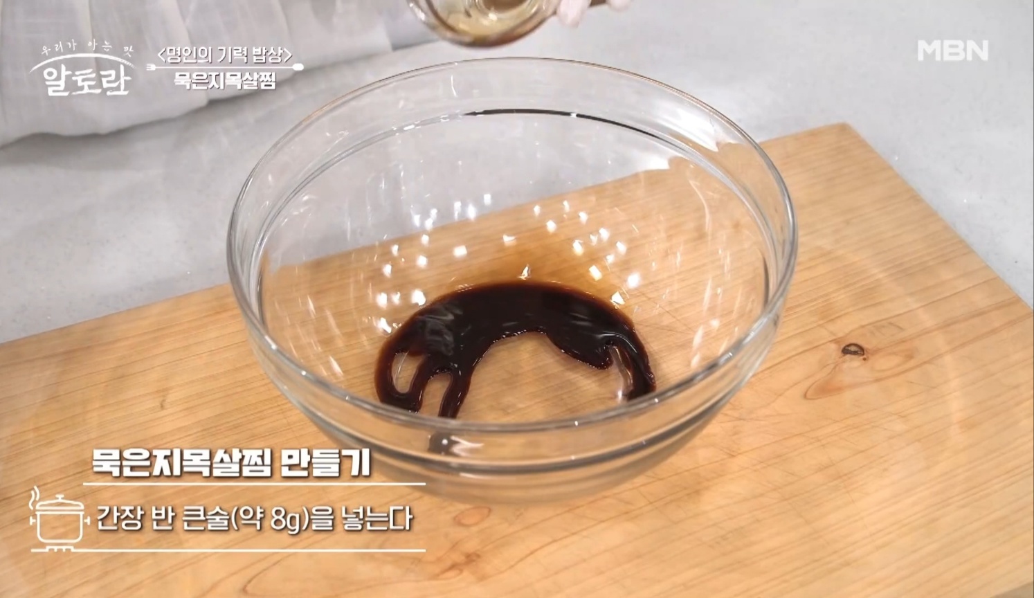 간장 1/2큰술 (약 8g)을 그릇에 넣어주세요.