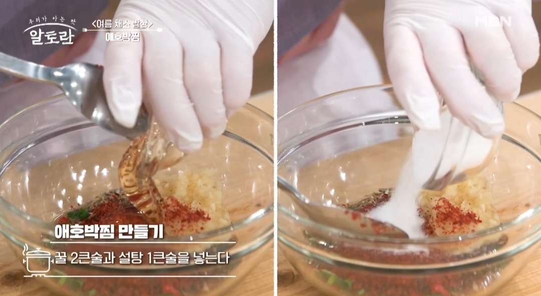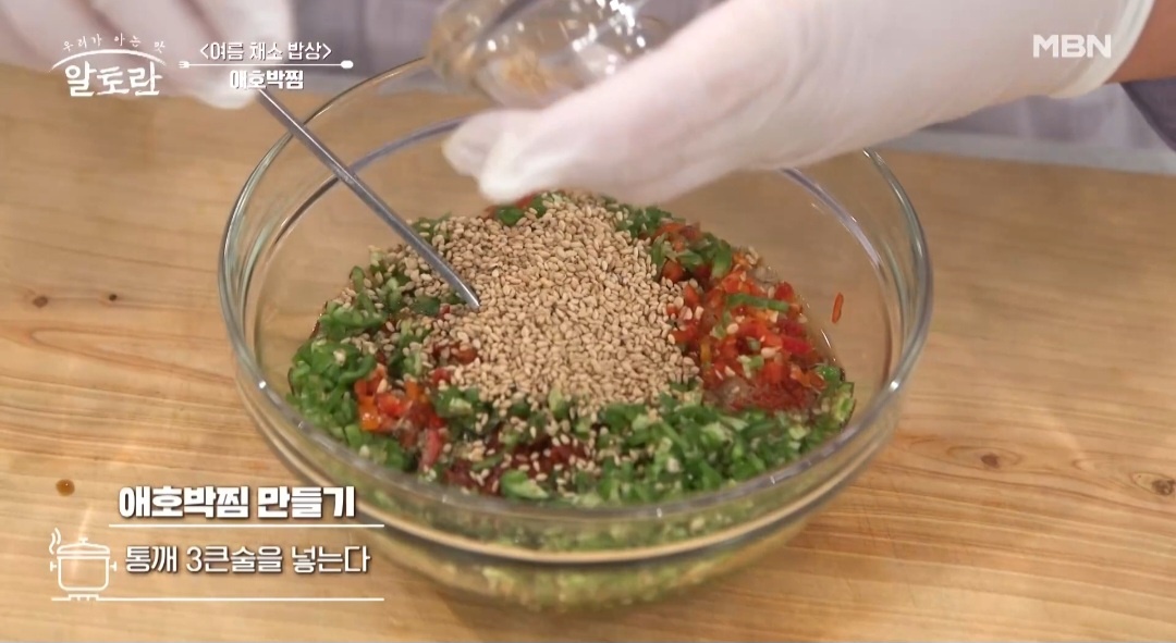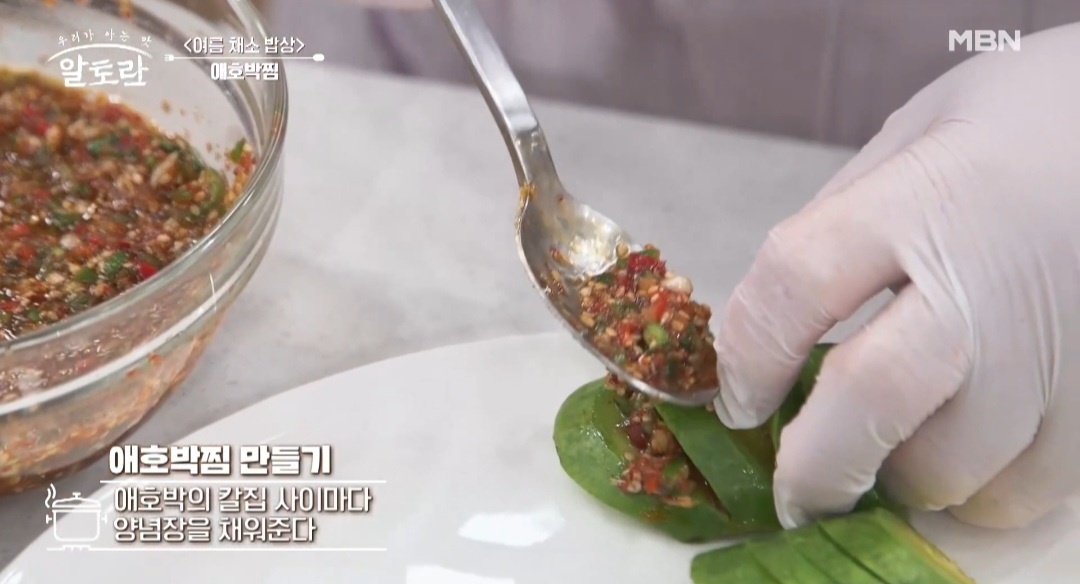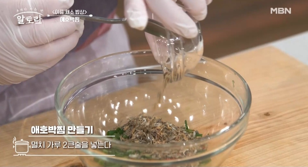 * 강순의 명의의 애호박찜은 조미료가 들어가지 않기 때문에 멸치를 굵게 다져 넣어 양념장에 천연 감칠맛을 더해줍니다.