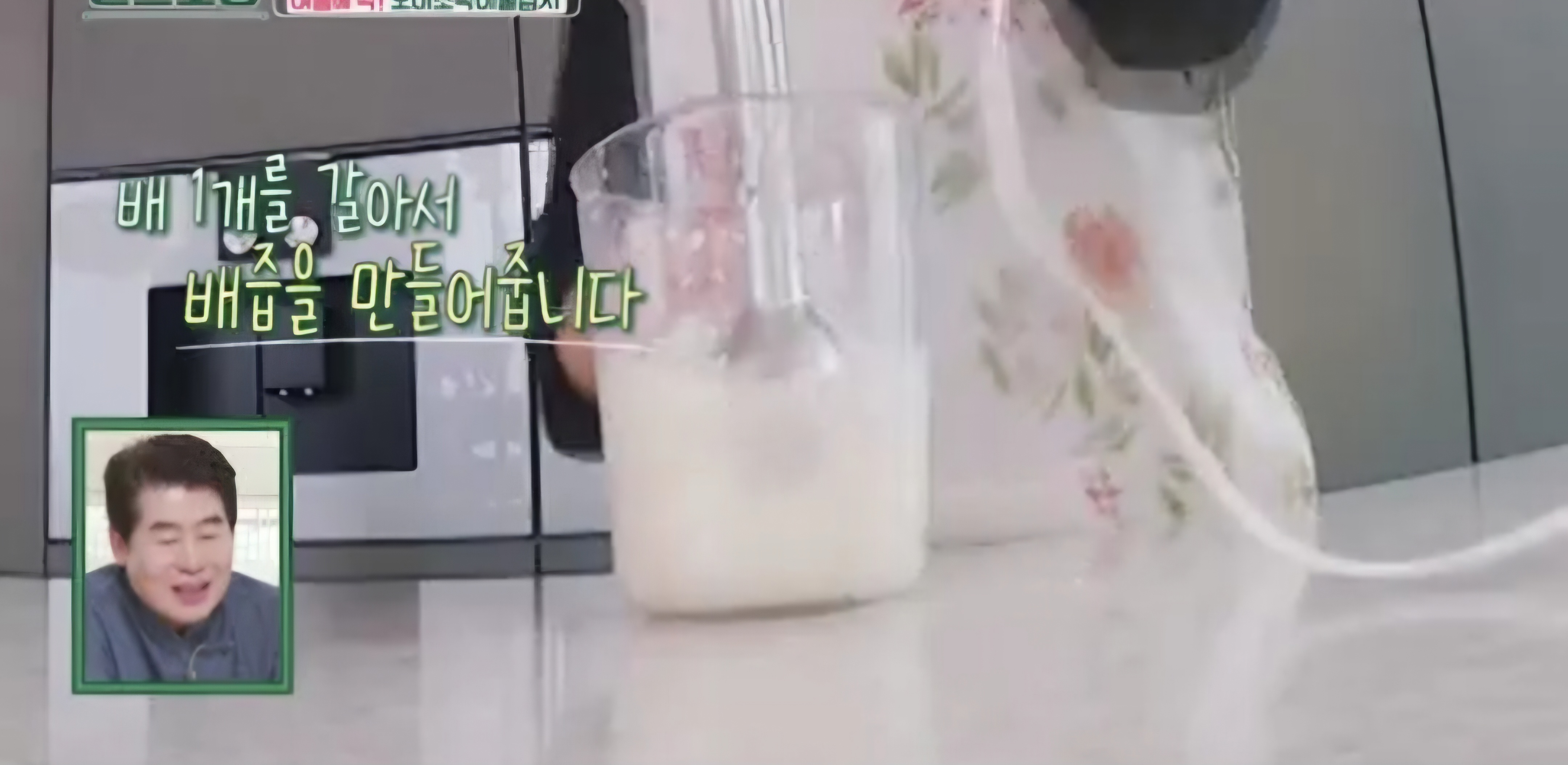배 1개를 깎아준 뒤 갈아서 배즙을 만들어주세요.