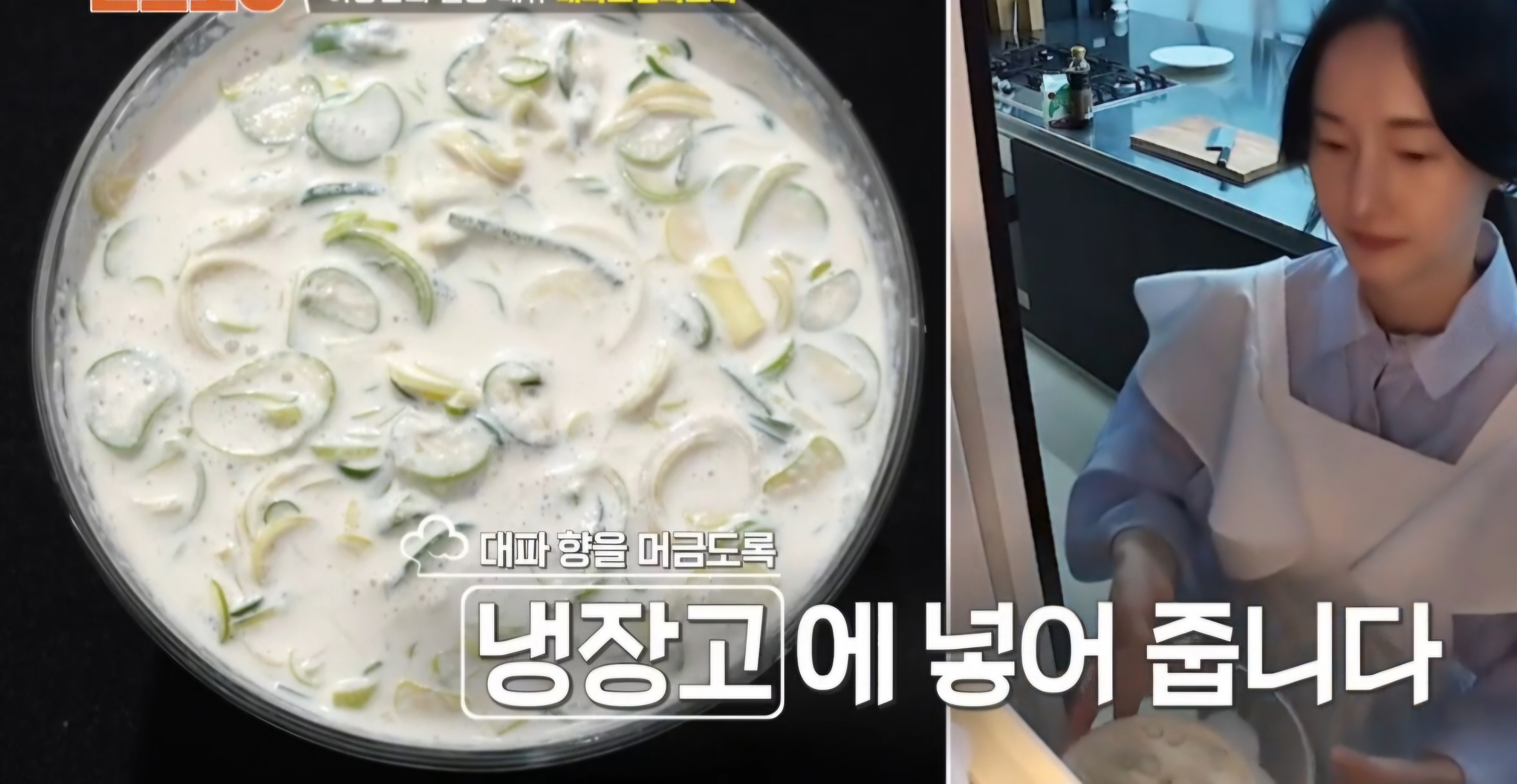 냉장고에 숙성해주는 과정을 거치면 생크림에 대파향이 잘 입혀집니다.