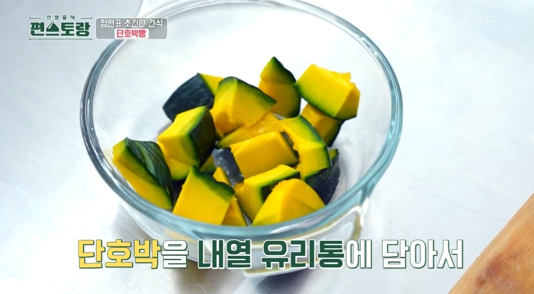 편스토랑에서 이정현이 단호박빵 만드는 법을 소개했습니다. 외출 30분 전에 만들기 시작할 정도로 빠르고 쉽게 만들 수 있는 간식입니다. 아이에게 간식으로 줄 수 있고, 외출 시 간단하게 먹을 수 있는 음식으로 딱입니다. 단호박은 소화기능이 약한 분들에게 좋고 장 건강에도 좋은 재료입니다. 특히 칼로리가 낮아서 다이어트하는 분들에게 간식으로 추천드릴 수 있는 단호박빵입니다. 지금부터 편스토랑 단호박빵 만드는 법을 소개하겠습니다.