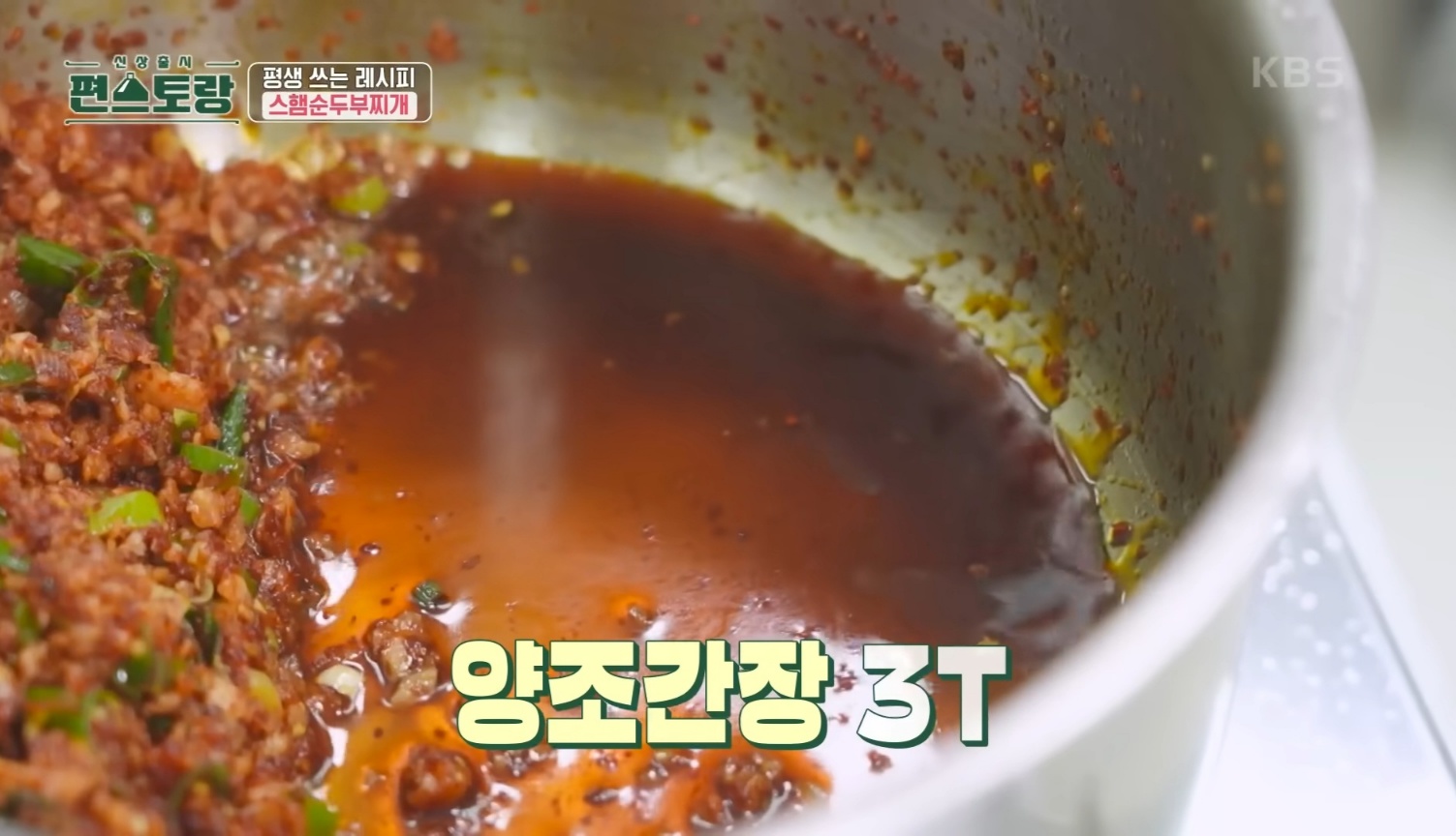 (순두부찌개의 핵심은 고추기름인데, 류수영의 스팸순두부찌개 핵심은 고춧가루를 절대 태우지 않는 것입니다. 고춧가루를 넣는 순간 바로 불을 꺼주세요.)