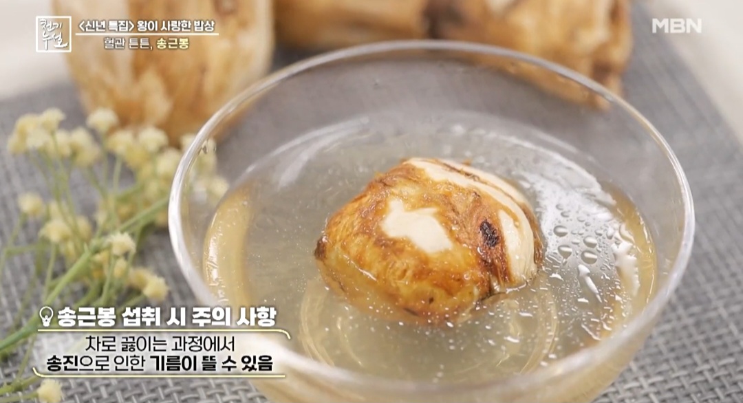 MBN 천기누설에서 기력보충과 혈액 순환을 도와주는 약재인 송근봉에 대해 알려주었습니다. 소나무 뿌리에서 자라는 혹이라고 불리는 송근봉에는 여러 가지 효능이 있어 차로 만들어 마셔주거나, 술에 담가서 약주로도 먹을 수 있습니다. 오늘은 송근봉의 효능과 송근봉차 만드는 법까지 자세하게 알아보겠습니다.